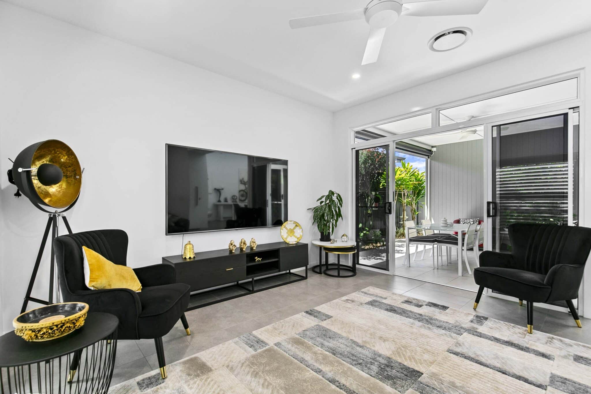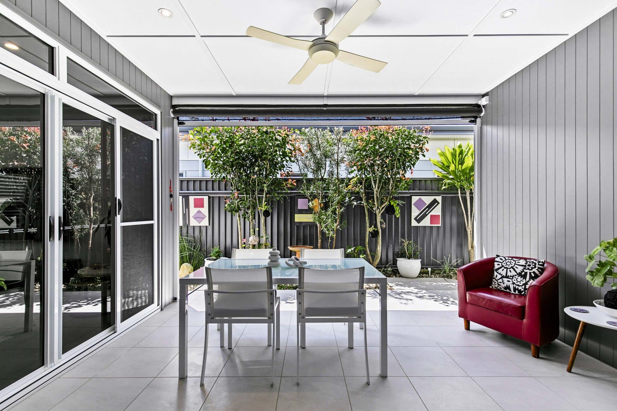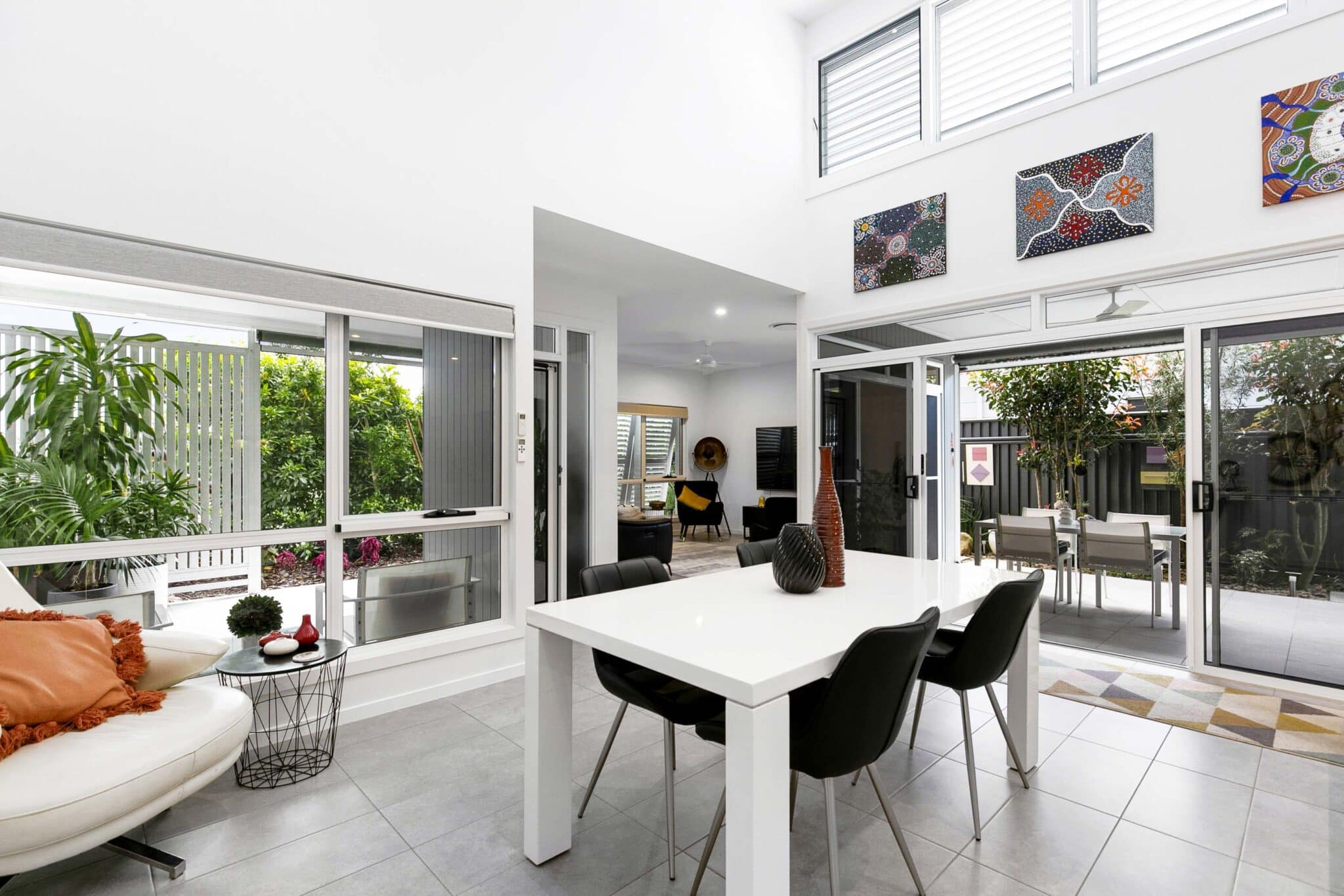 This design features a front alfresco surrounded by lush landscaping as well as a private side alfresco featuring two slider doors that open from the living and dining rooms. Both alfresco’s feature fully enclosed motorised blinds, privacy screening and lockable gate creating additional tranquil living spaces to the home.