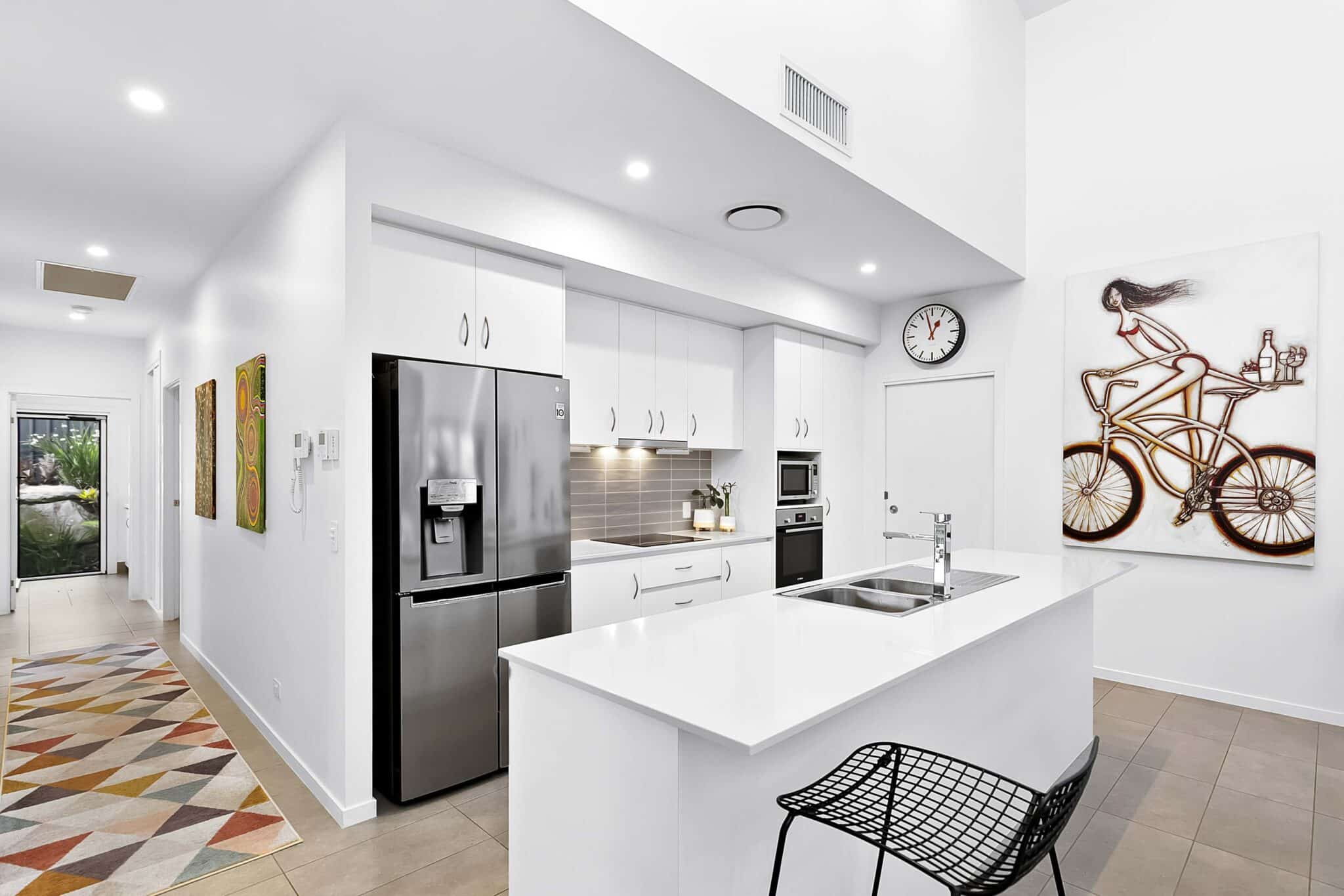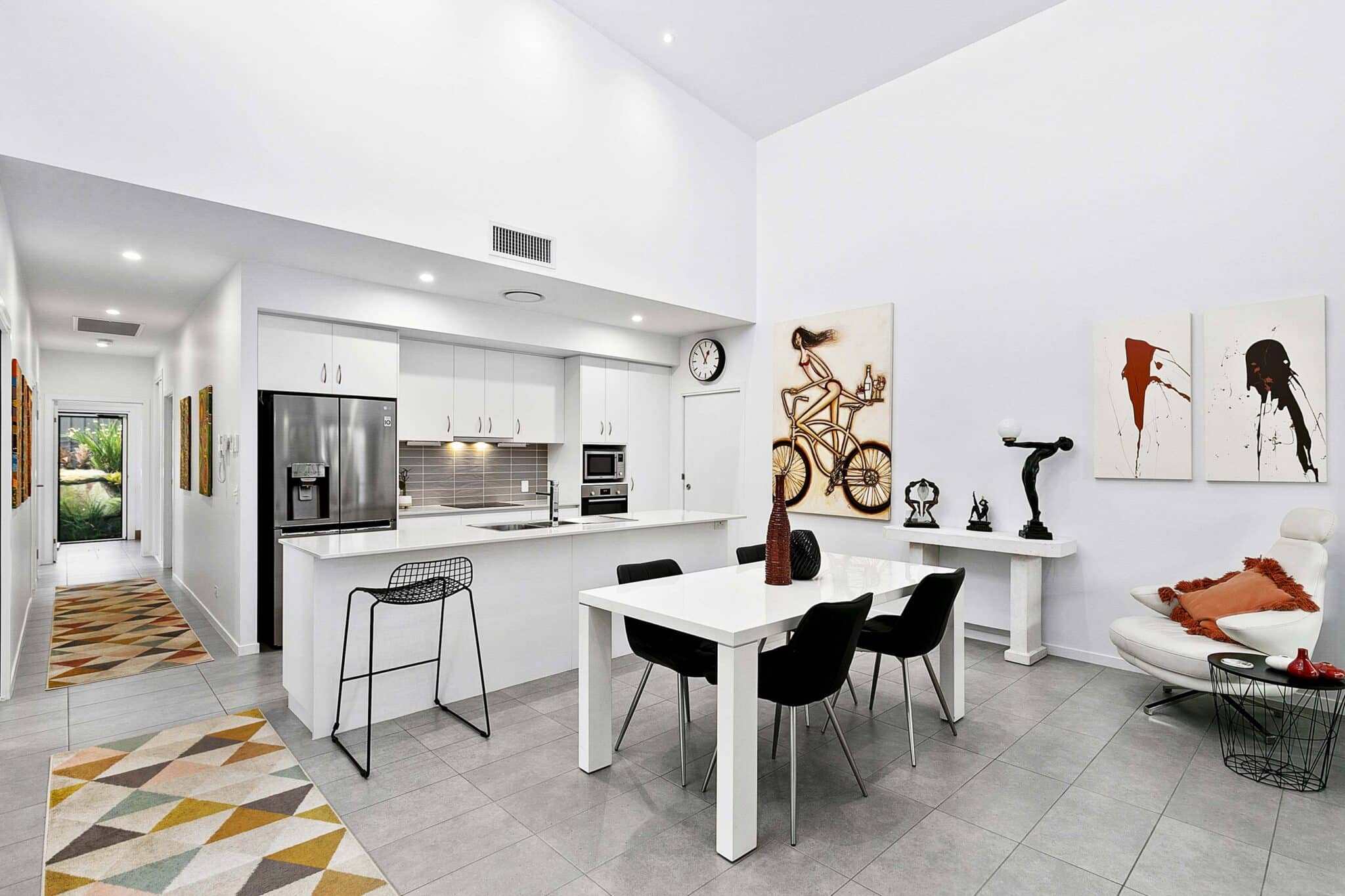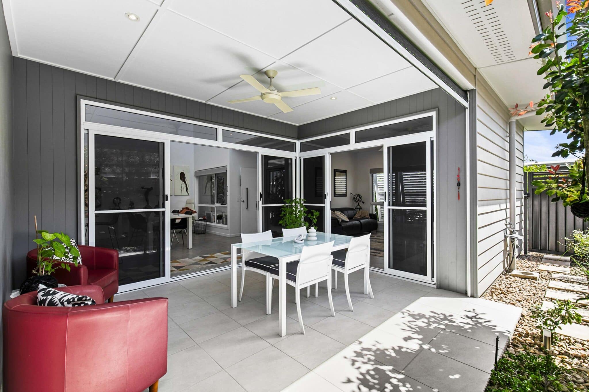 This design features a front alfresco surrounded by lush landscaping as well as a private side alfresco featuring two slider doors that open from the living and dining rooms. Both alfresco’s feature fully enclosed motorised blinds, privacy screening and lockable gate creating additional tranquil living spaces to the home.