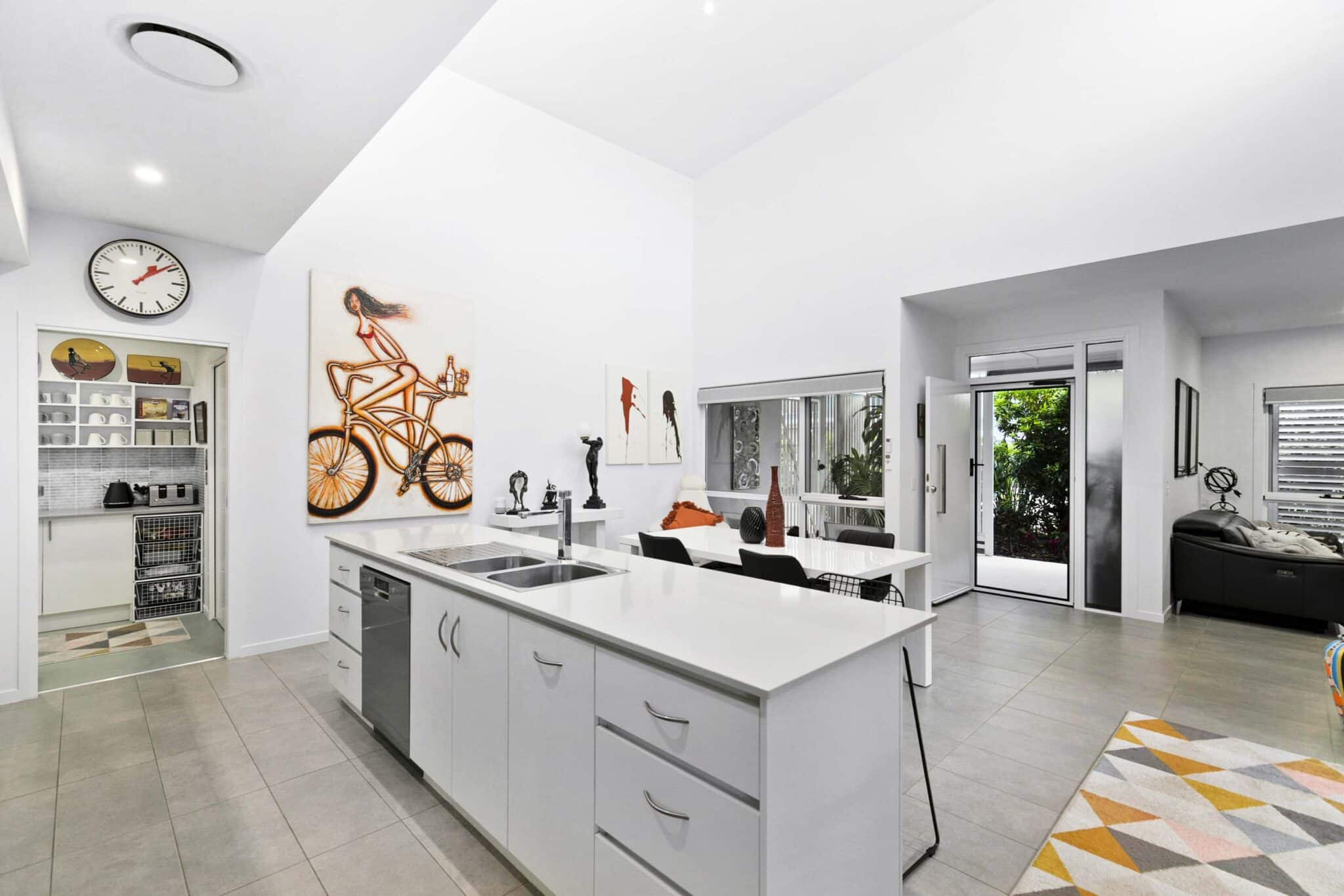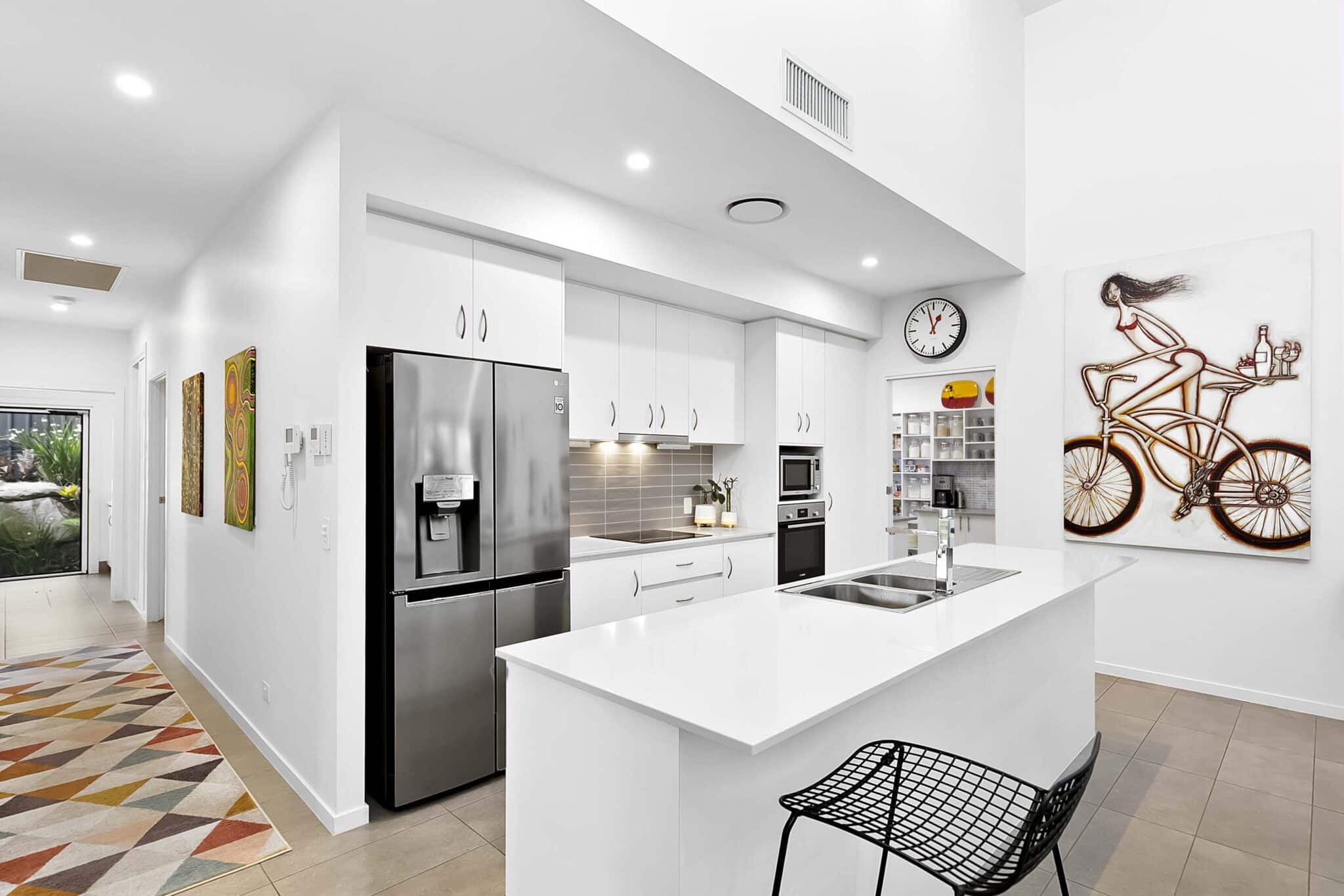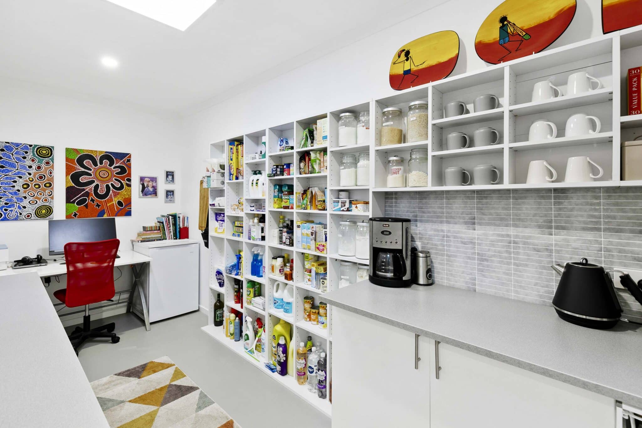 This home has a unique driveway that aligns with the street allowing you to reverse your RV, boat or cars with ease into the impressive 16m x 6m garage with 5.6m length in front of the custom walk-in pantry/study nook that also provides functional mezzanine storage. The insulated panel lift garage door allows 3.6m clearance height and features epoxy flooring and 15amp power.