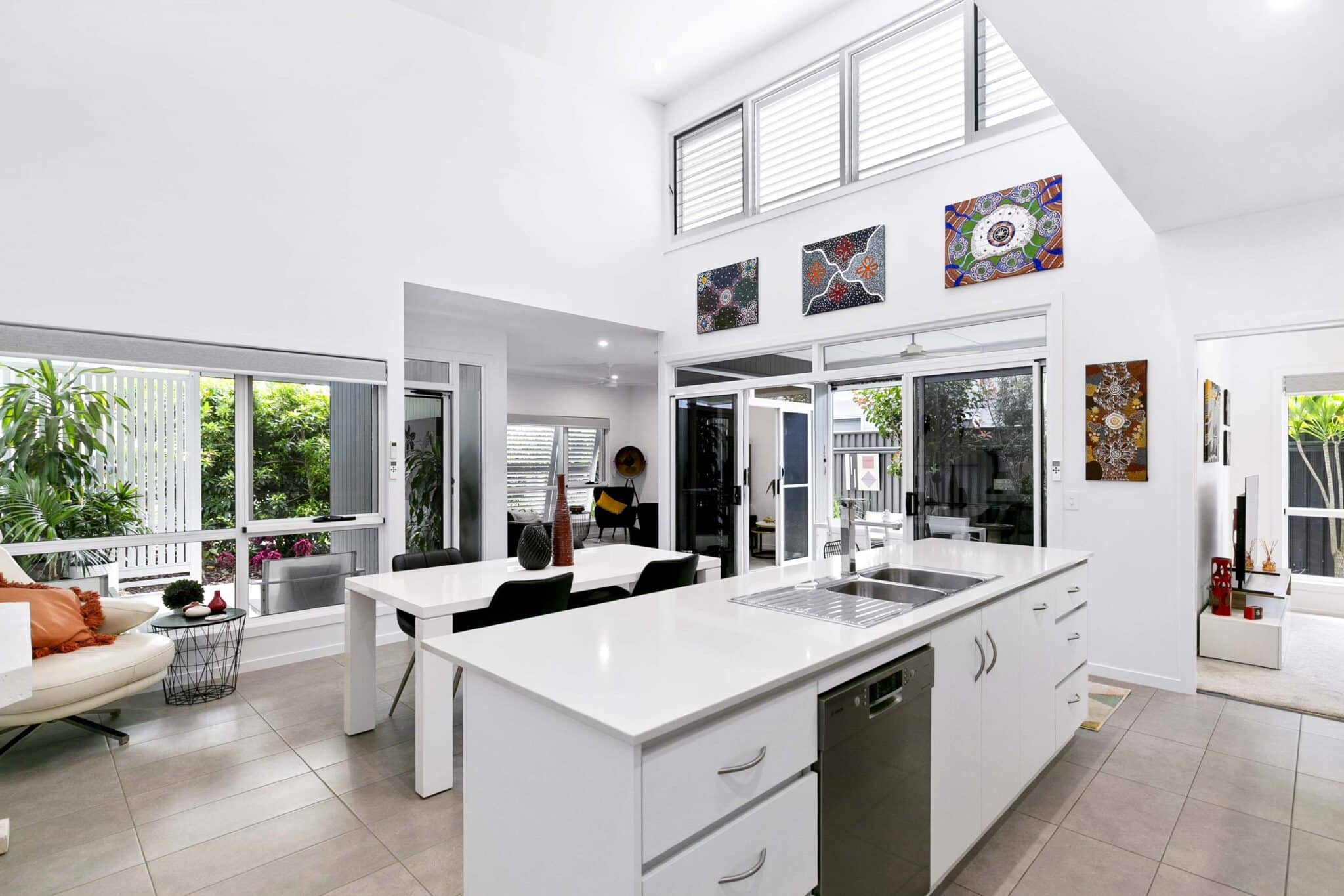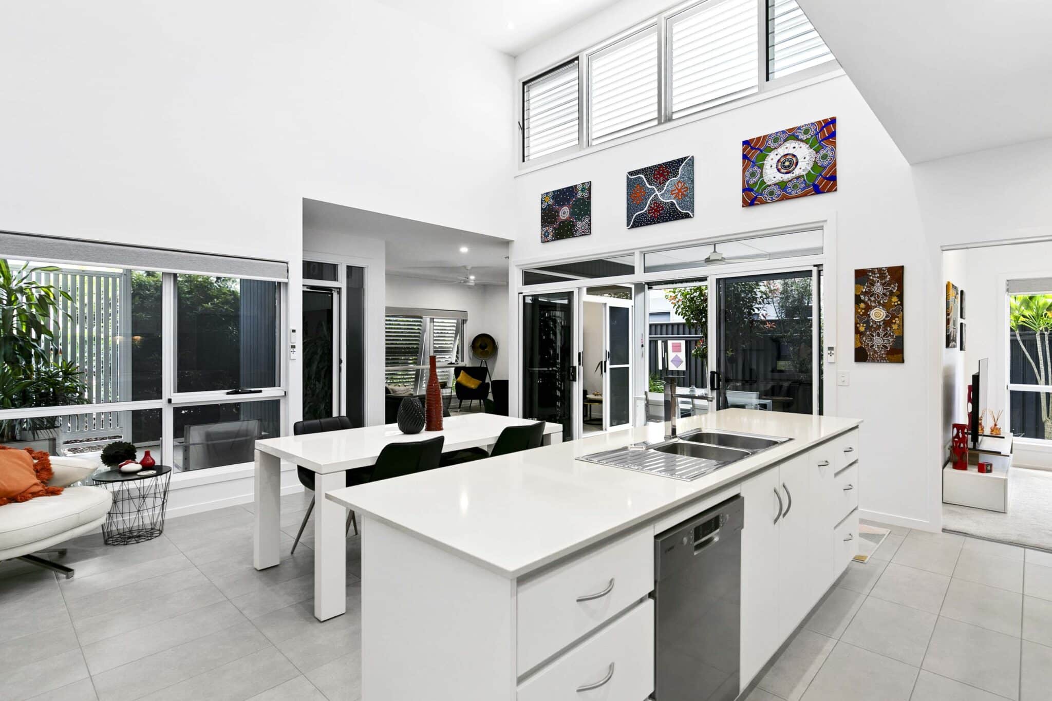 The flow of indoor and outdoor living is an entertainers delight in this home. Featuring the original Kennard design expansive north aspect raked ceiling with louvre windows over the dining and kitchen allowing extra light and breeze to fill the home.