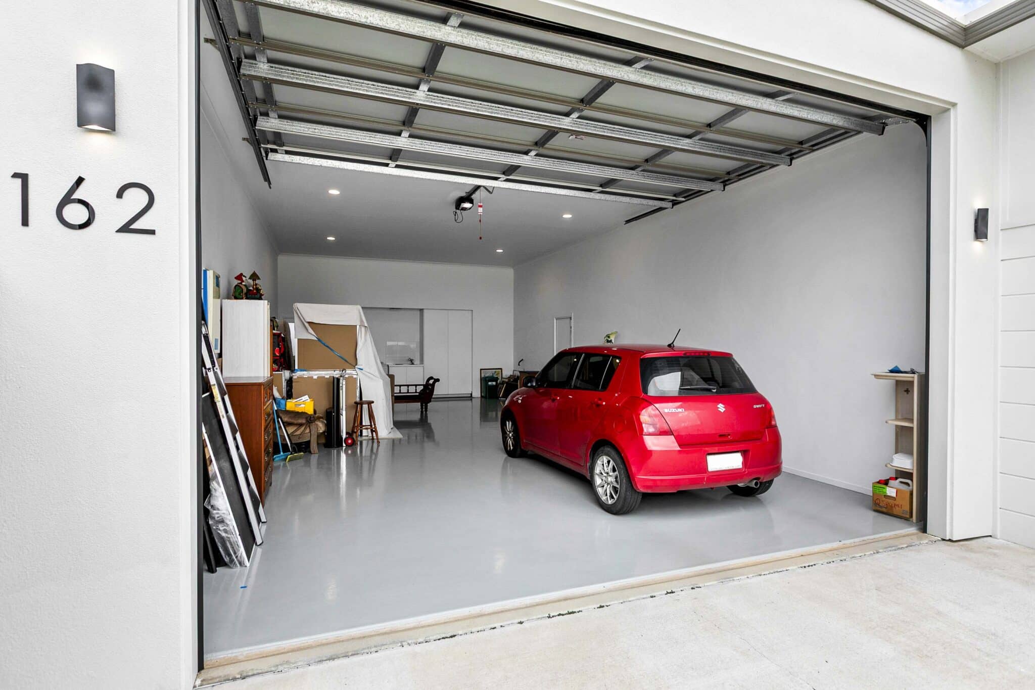The 11m x 6m garage provides enough space to comfortable store your RV, cars and hobbies. The panel lift door allowance is a 3.3m clearance height with an epoxy flooring and 15amp power outlet. The laundry is situated in the garage and has additional storage and broom cupboard with an GPO.