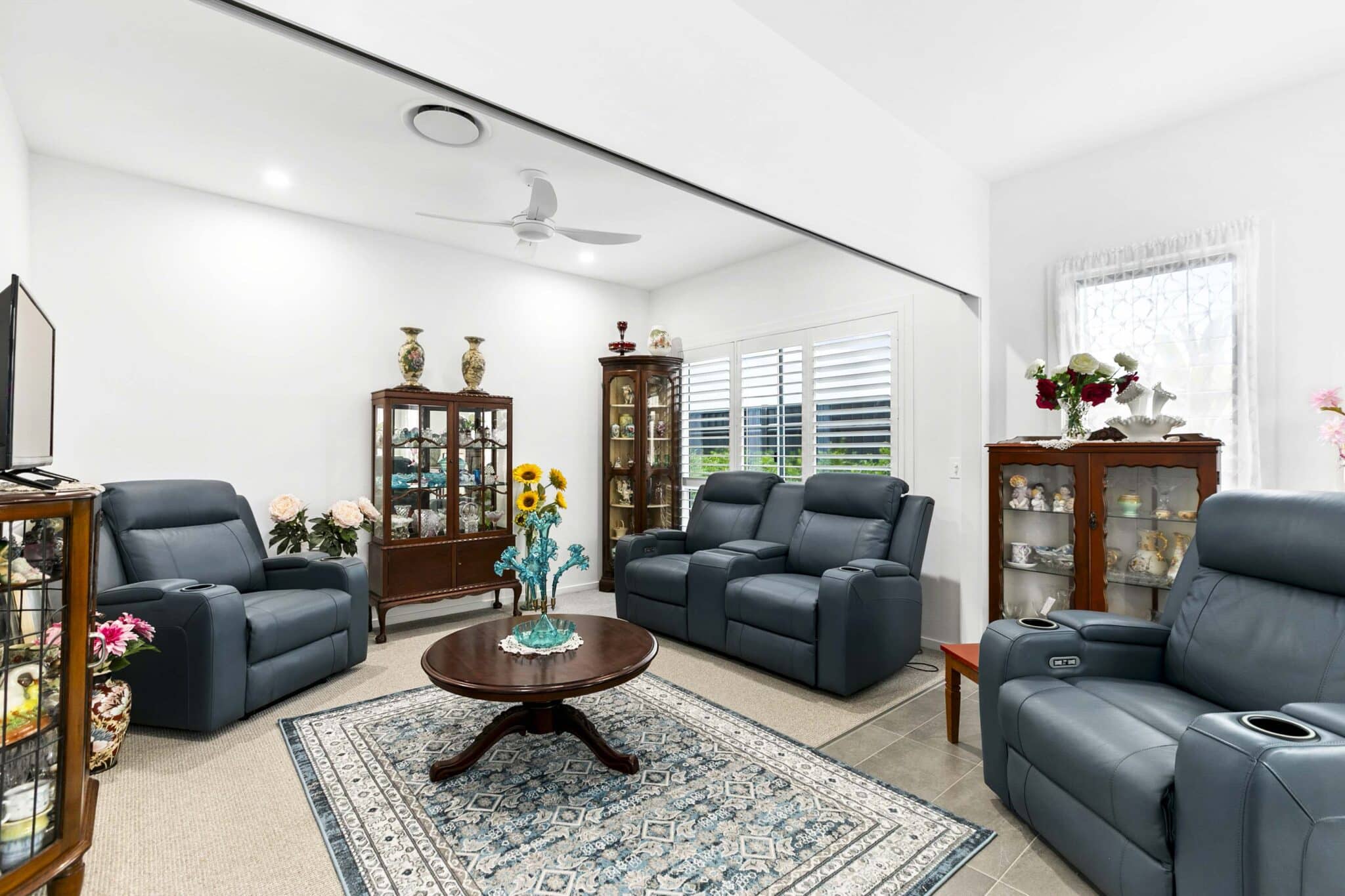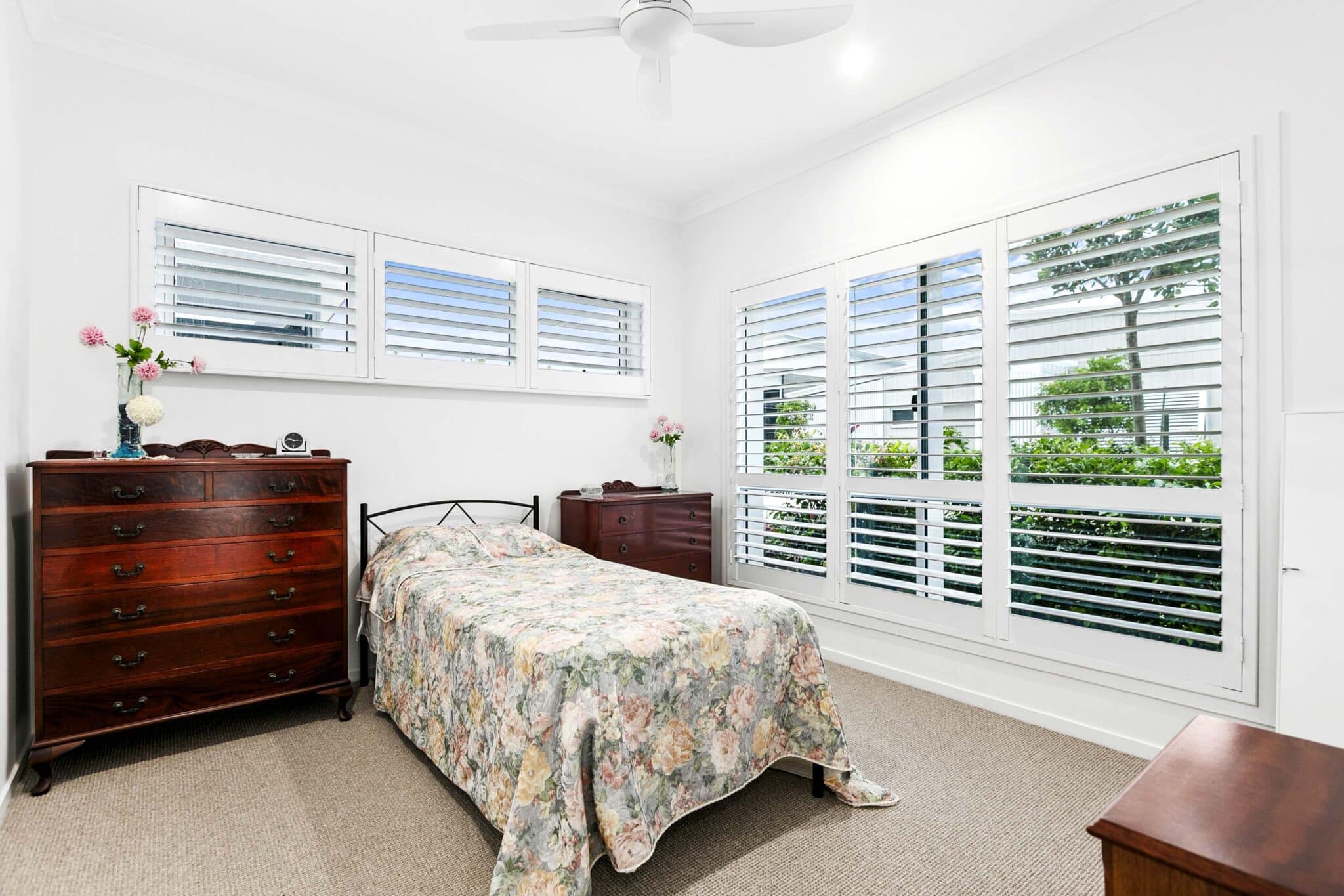 - Veri-shades, blinds and plantations shutters adorn windows