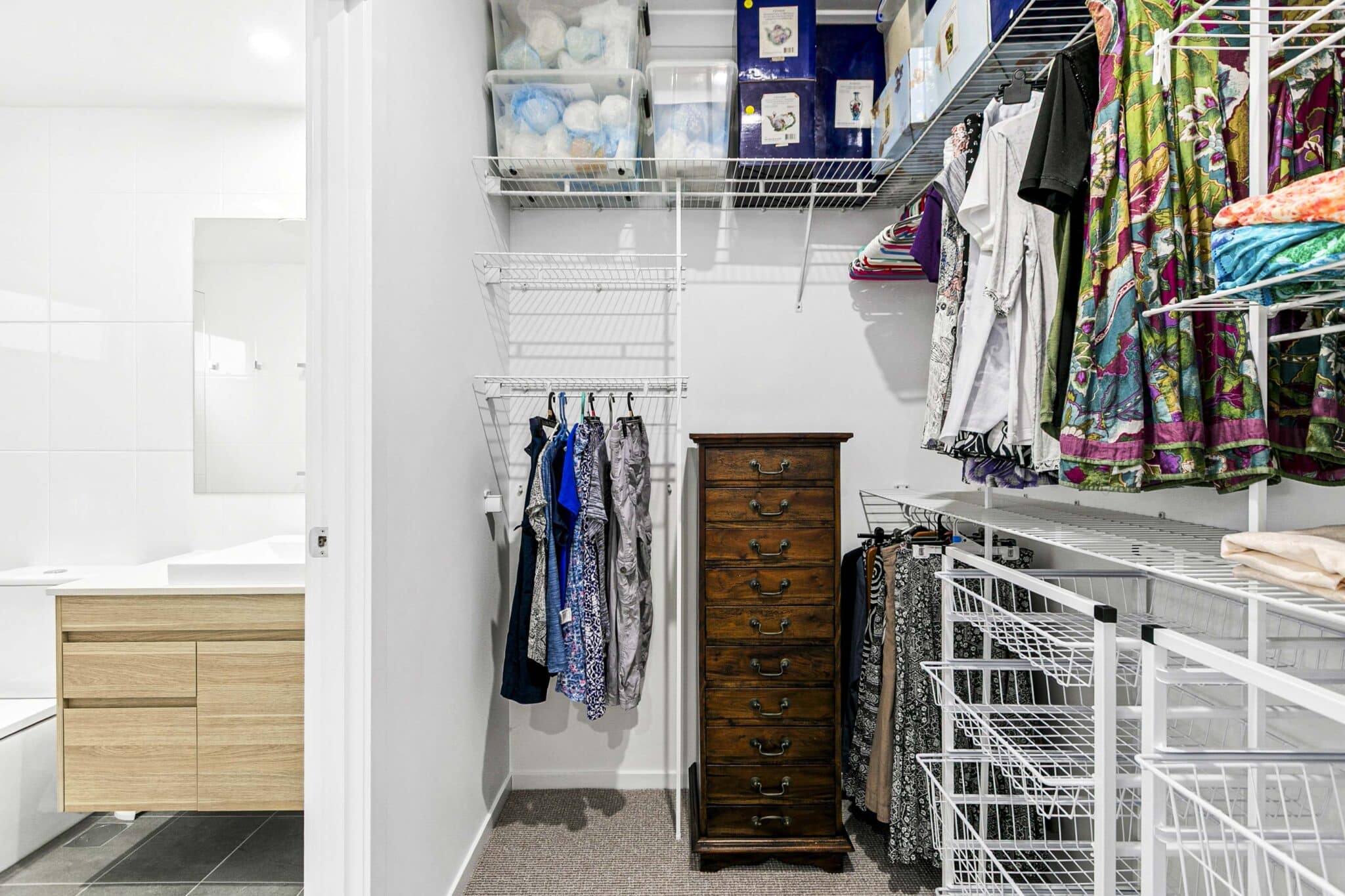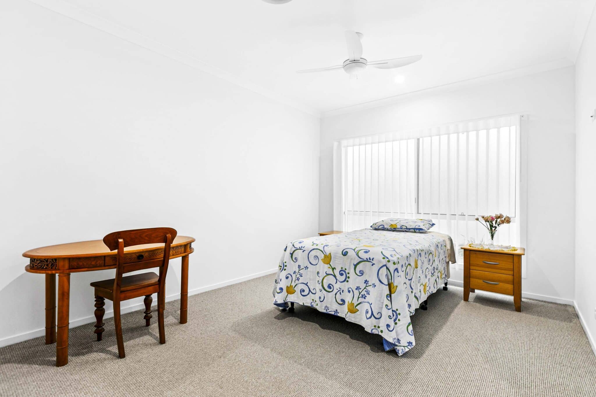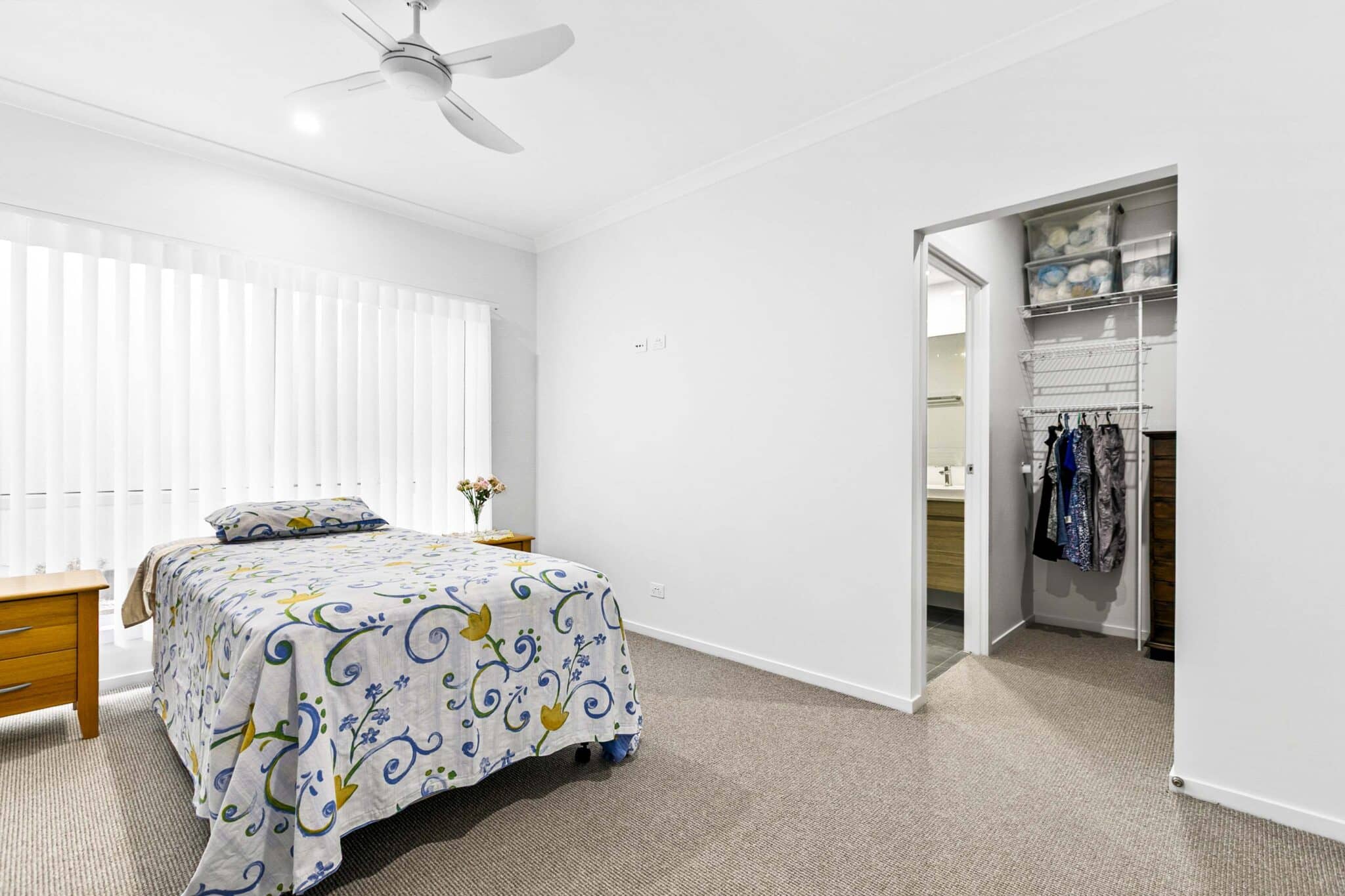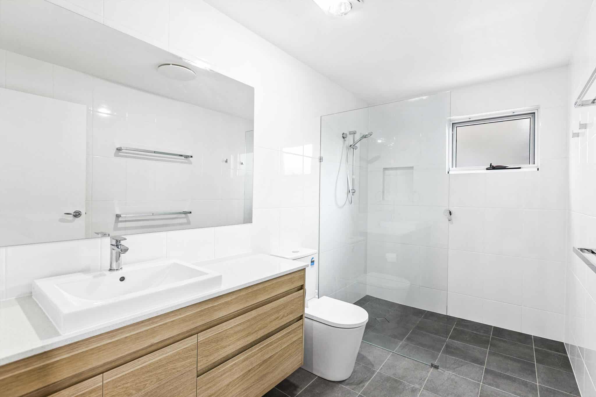 The ensuite and main bathrooms are tiled floor to ceiling with frameless glass screens, stone bench tops and soft close vanity drawers. Both bathrooms have windows with screens providing extra light and ventilation.