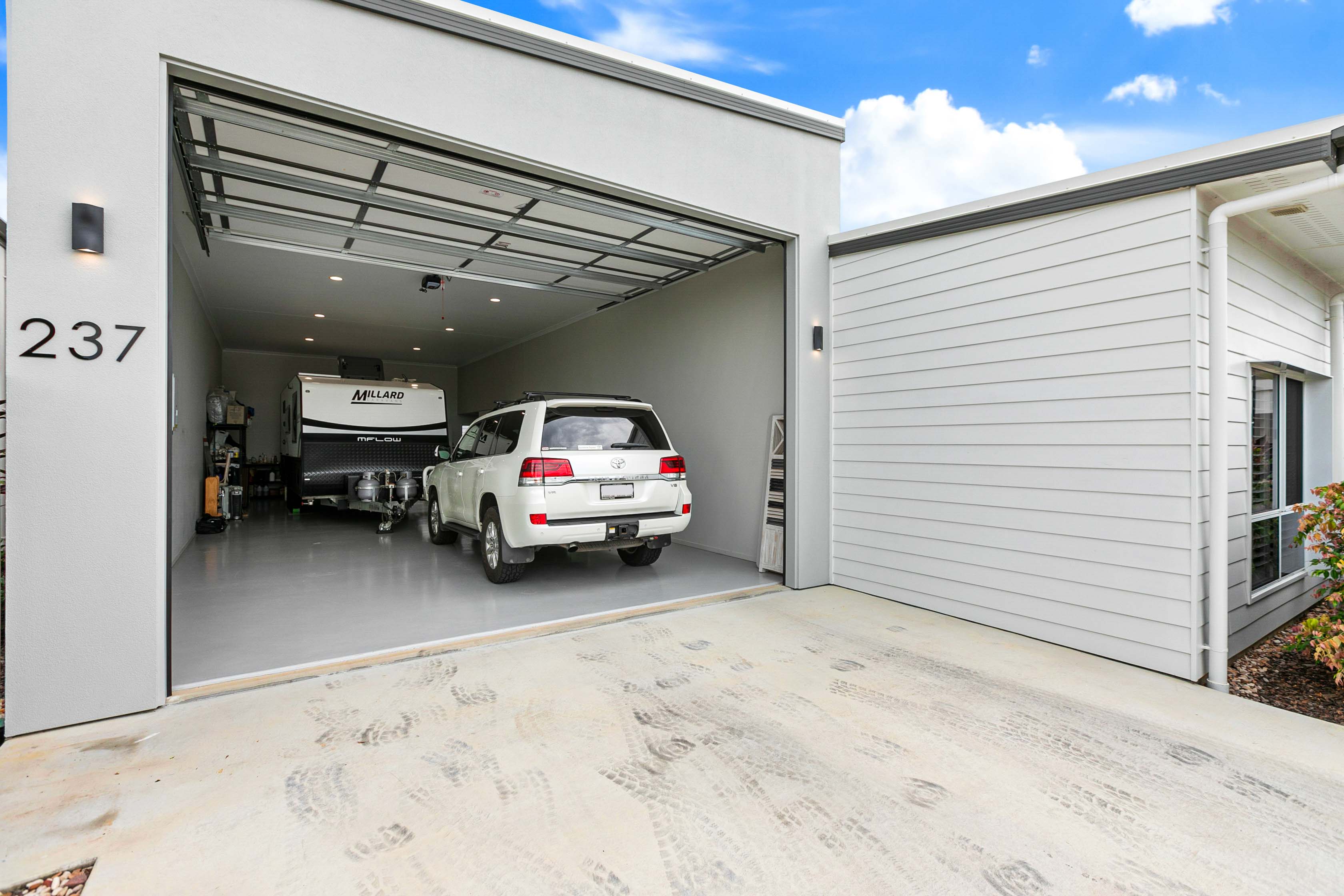 The impressive 15m x 6m RV garage with an insulated panel lift door, with 3.6m clearance, is positioned for ease of parking and provides plenty of space to store you van, cars and hobbies. Featuring an epoxy floor finish, 15amp power and an internal laundry with water point and a generous broom cupboard fitted with a GPO.