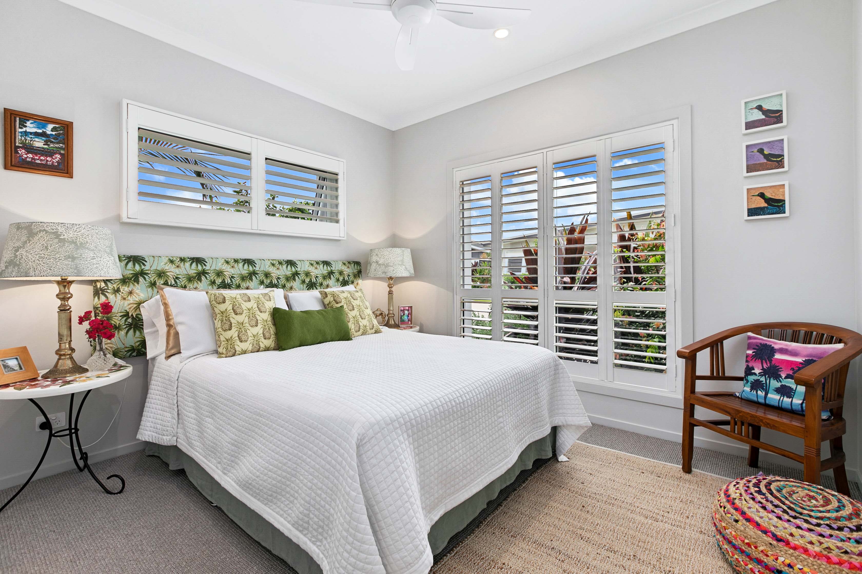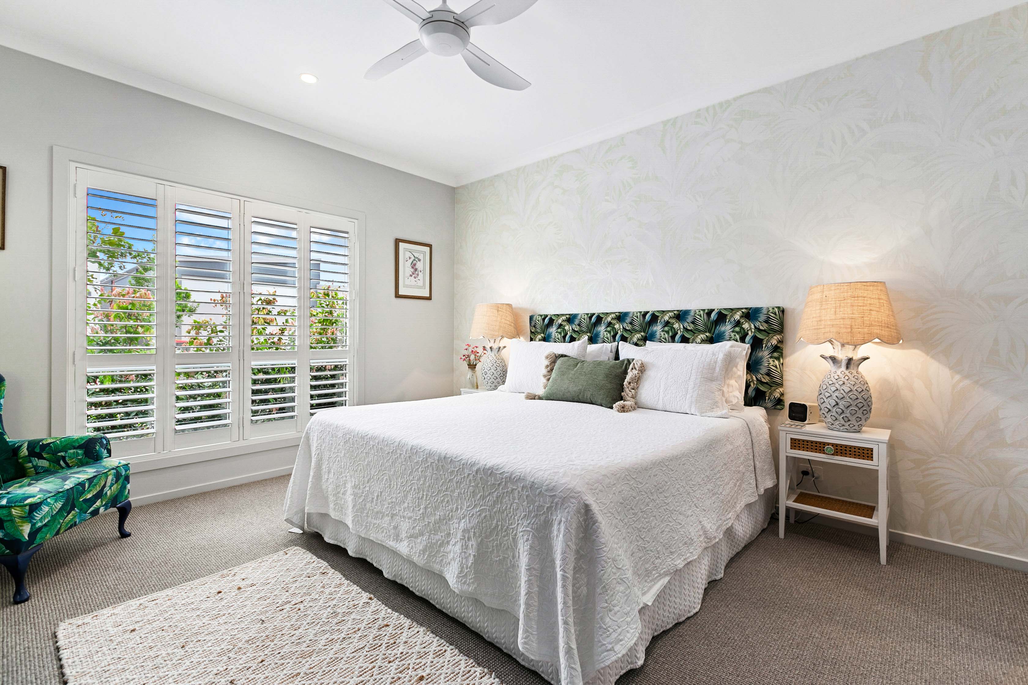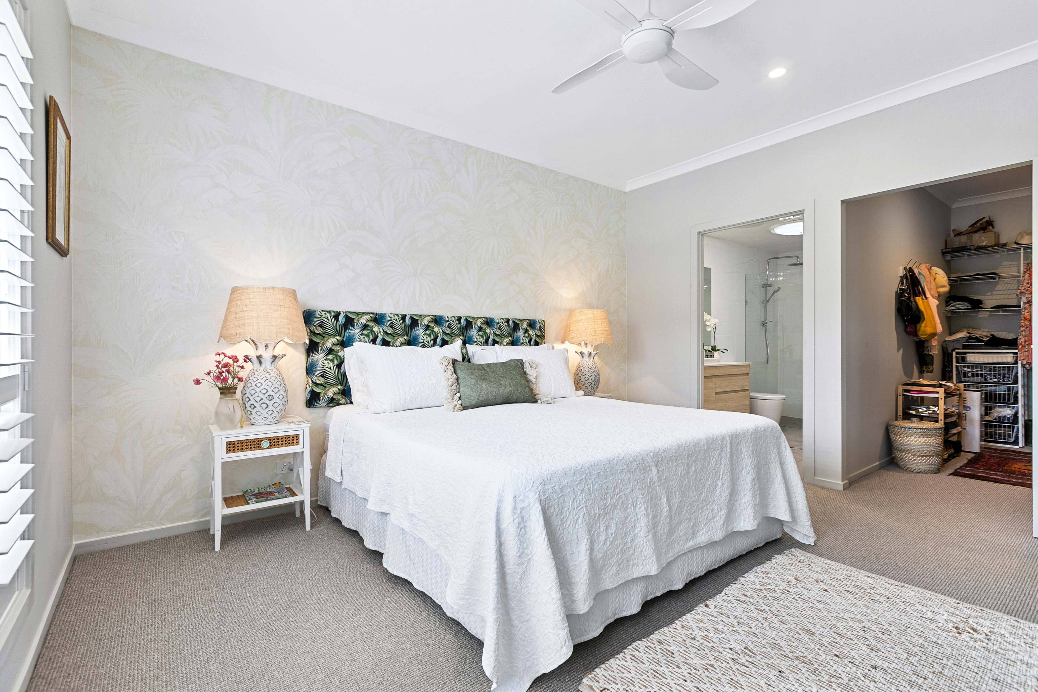 Styled with beautiful natural wallpaper feature walls in the living and main bedroom which will compliment your own colour palette. Stunning linen sheer curtains dress the slider doors off the dining and living, with white plantation shutters are a feature on the front bedroom windows.
