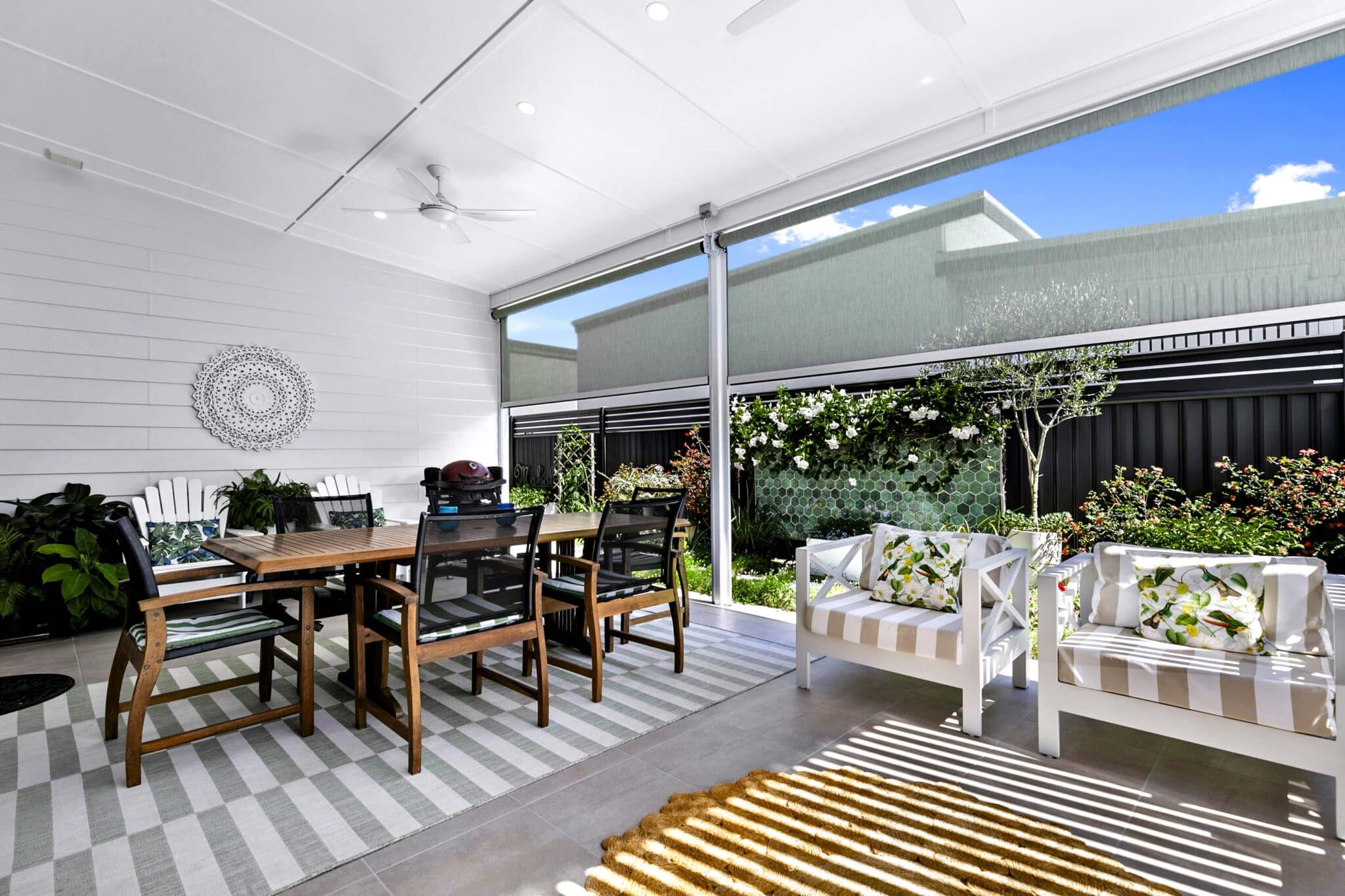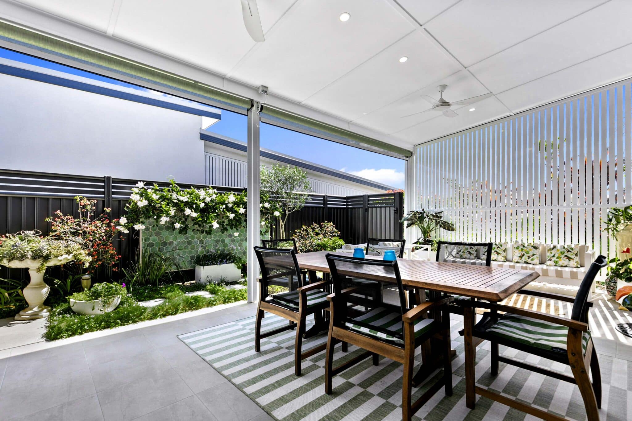 The expansive 7.6m x 4.1m alfresco is the gem of this home, with room for a dining table and outdoor lounge, it is where you will spend most of your time. Double slider doors allow an open flow from indoor to outdoor living. Private screening and motorised blinds provides shade yet filters beautiful breezes as you sip your coffee or cold beverage, surrounded by tranquil garden surrounds.