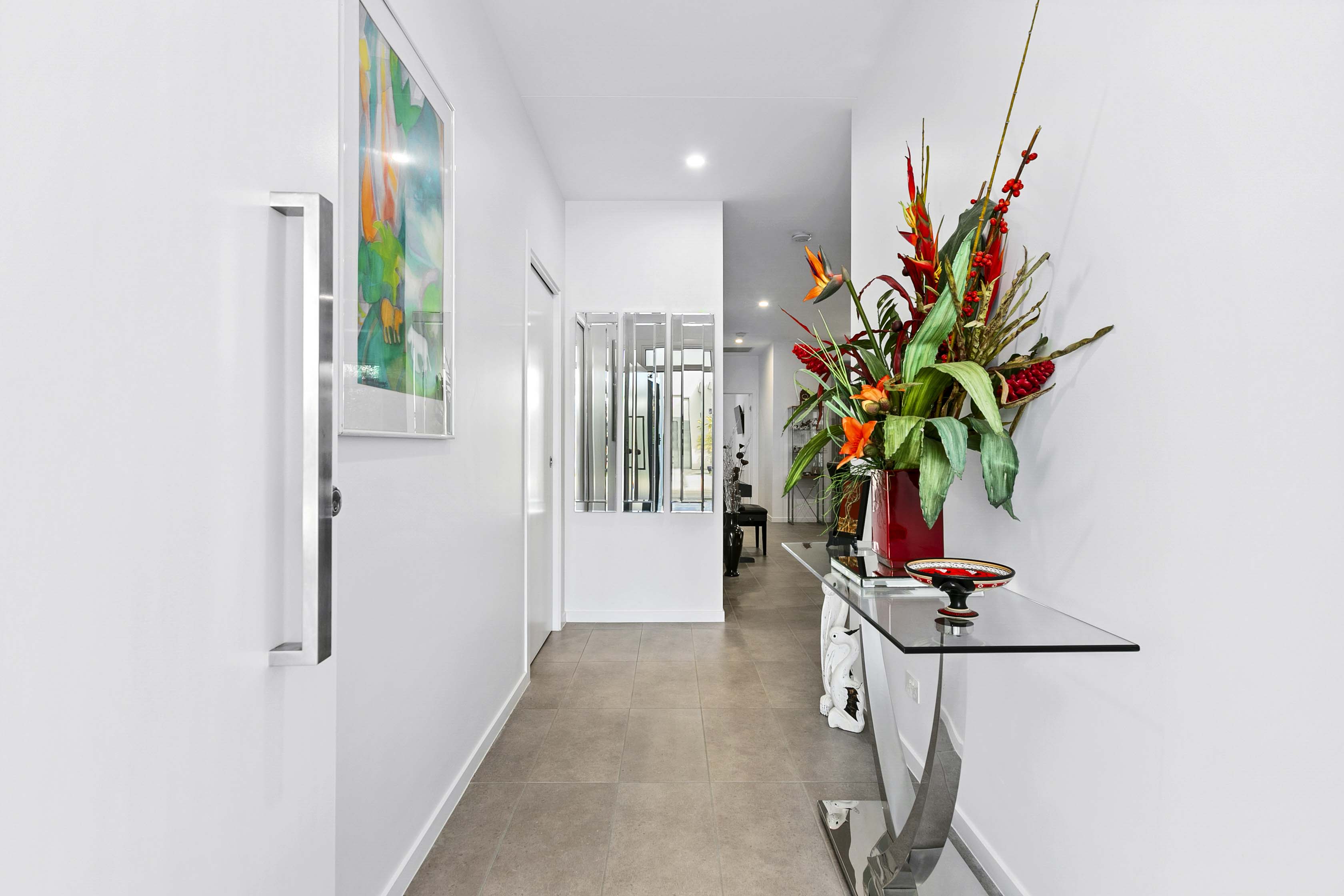 Security is assured with IntrudaGuard aluminium screens, Invisi-Guard front door screen, and remote-monitored external cameras. The garage and sliding alfresco doors are lockable.