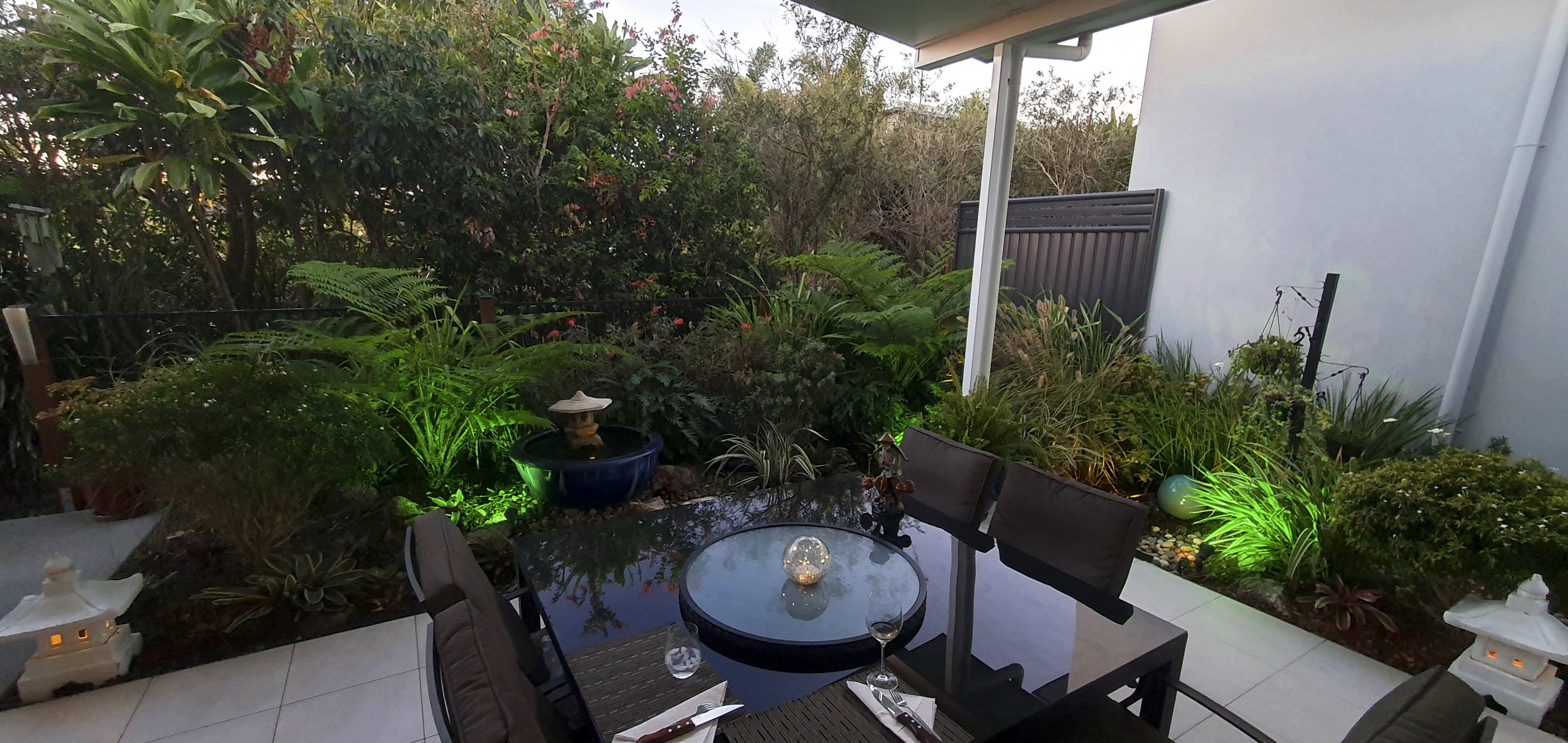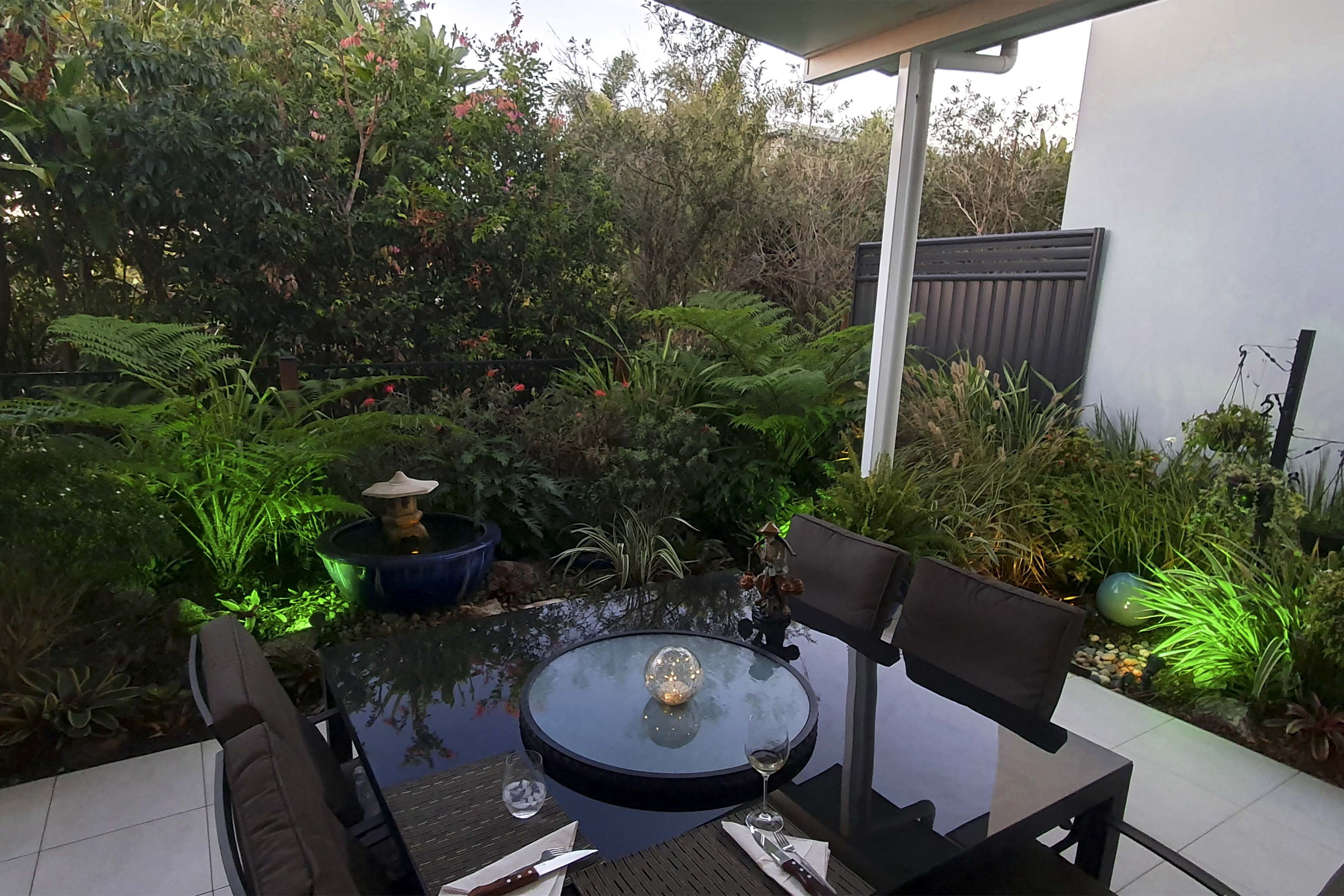 The standout feature is the private outdoor north facing living area, peaceful, breezy, and beautifully screened for privacy with lush gardens on both sides.