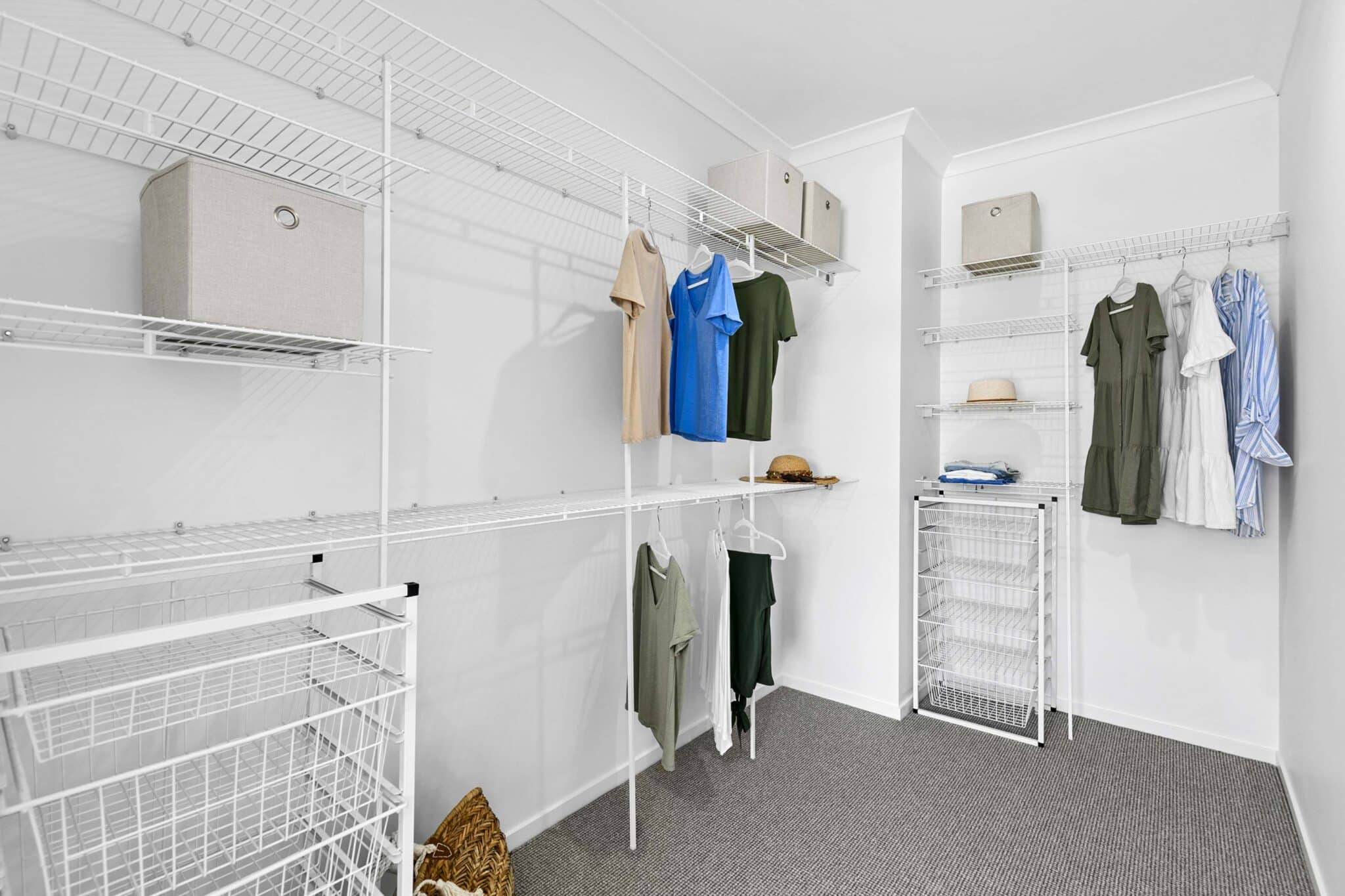 - Walk in or built in robes with ventilated shelving, basket sets and hanging space