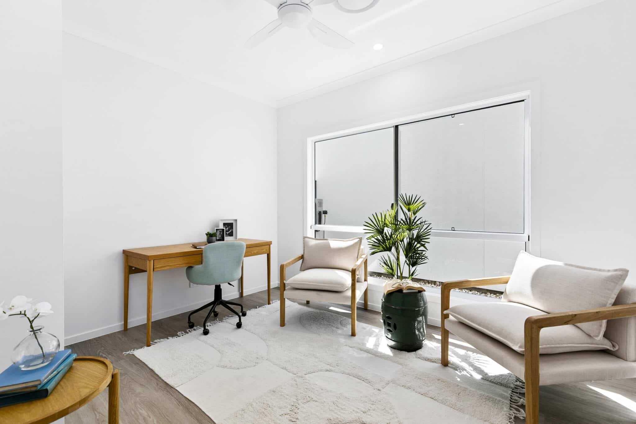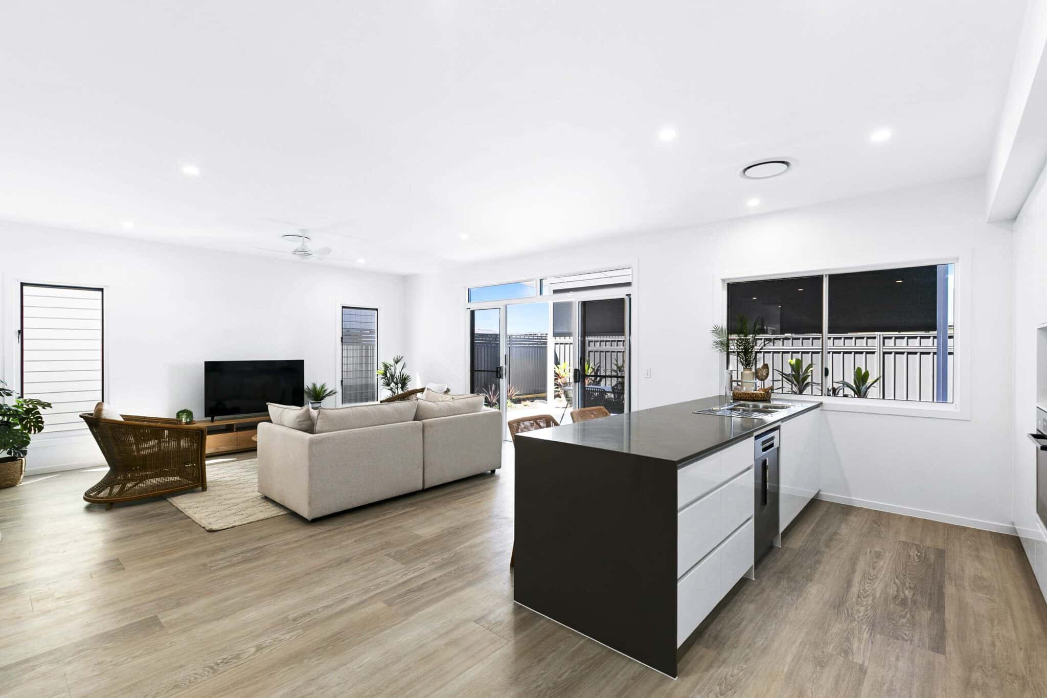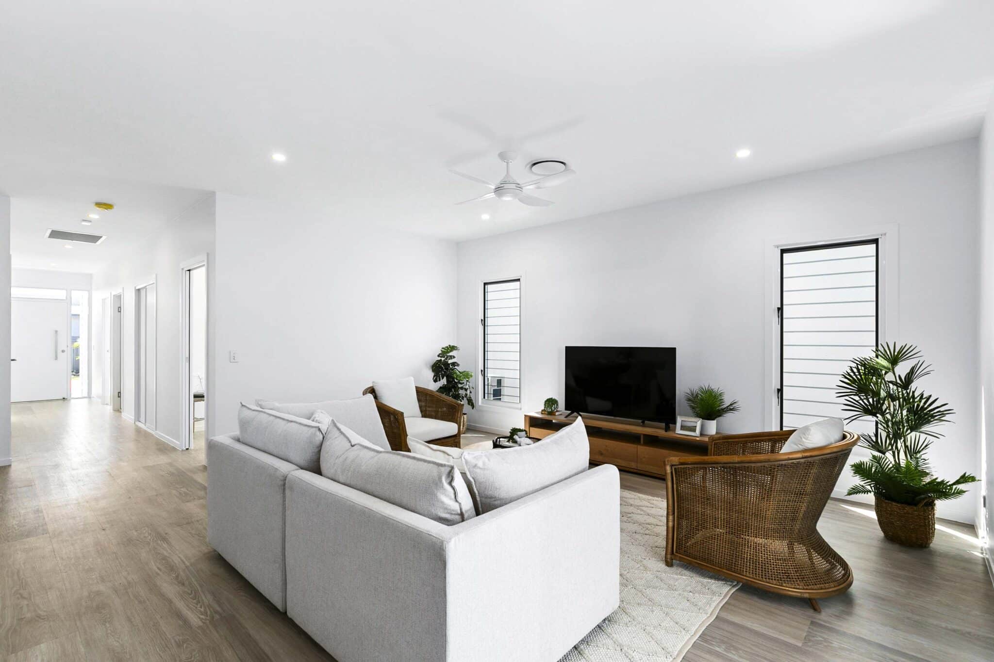 - 75mm cove cornice to bedrooms and garage and square set to living areas