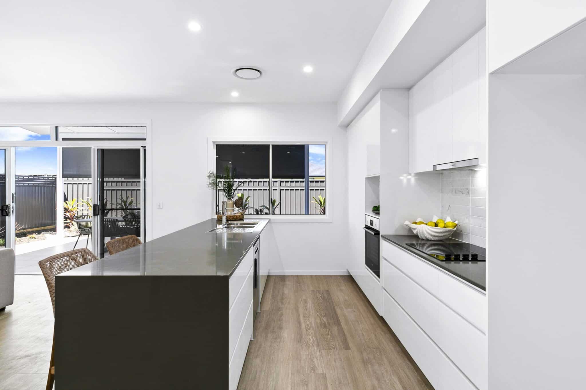 - Laminated, soft close cupboards and drawers with bulkhead to ceiling